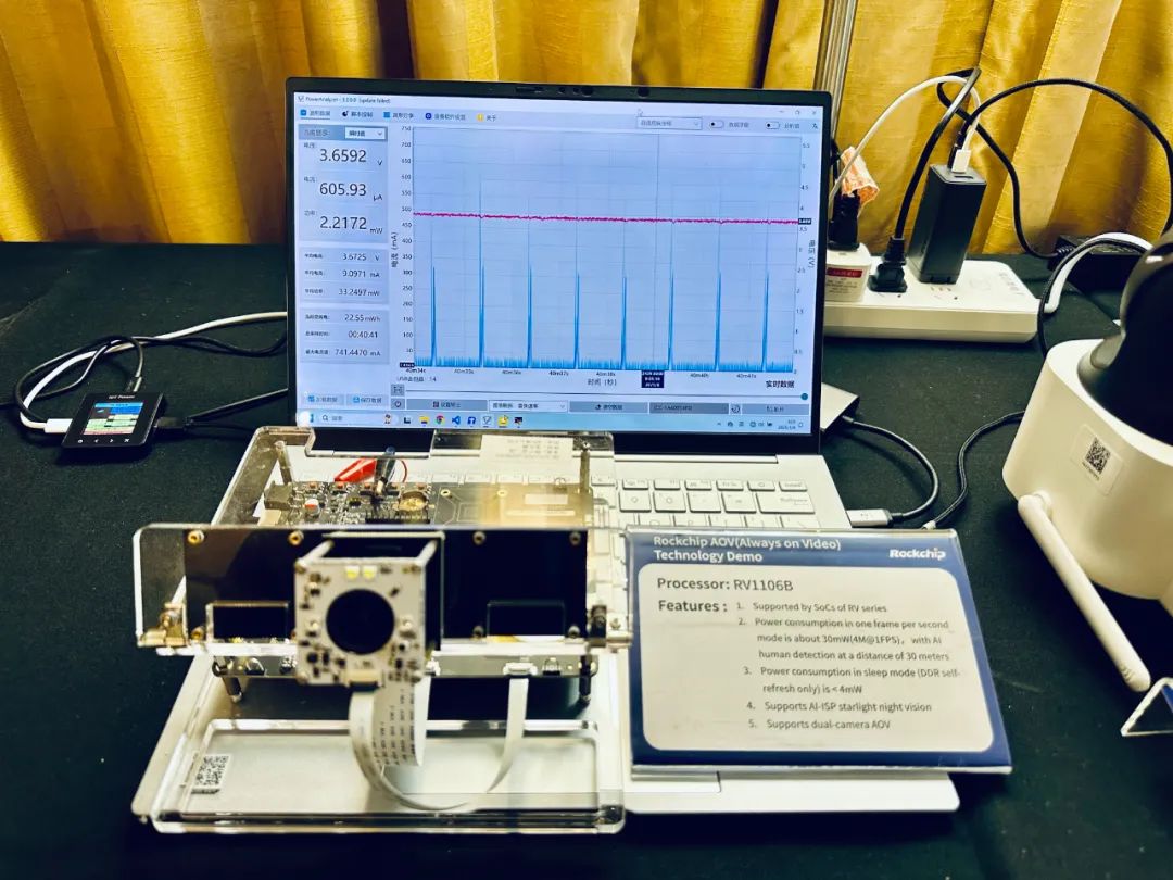 机器视觉展区,展示了基于华体会线上平台微多款视觉方案的丰富产品形态,包括4K60运动DV、AI智能视觉眼镜、双目AOV IPC、双目可视门铃、打猎机、医用内窥镜等,广泛应用在安防、娱乐、教育办公、医疗等场景。展品采用RV1106B系列及RK3576,重点演示了华体会线上平台微AOV超低功耗及新一代AI-ISP技术,支持一秒一帧或者一秒多帧低帧率全时录像,极低功耗运行;以及暗夜拍摄效果画面亮度及色彩还原度效果更好。