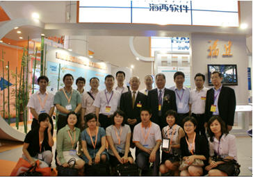 Led by the assistant of stadholder of FuJian province Zheng Songyan ,"FuJian Westcoast Solfware Exhibition Area" was cared for in many ways by all parties of the meeting. The stadholder assistant Zheng Songyan ,Deputy Director General of the FuJian Informatization Office ShaoYulong took photos with Mr.Huang Xu ,who represented our company ,and many other representatives.